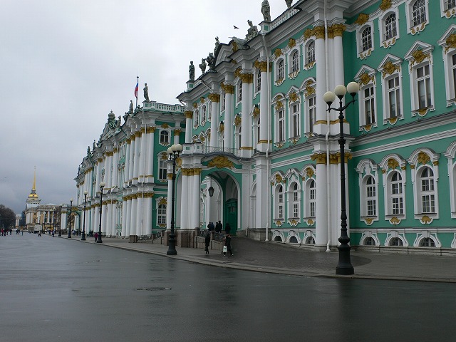 6.王宮広場 冬宮殿は、サンクトペテルブルクにあるかつてのロシア帝国の宮殿である。冬宮(とうきゅう)ともいい、ロシア皇帝の冬季の王宮[1]として1754年~1762年の間に建設された冬宮 サンクトペテルブルク建築家はバルトロメオ・ラストレッリで、緑と白の石材を用いたロココ建築は1,786のドアと1,945の窓がある。宮殿の北側はネヴァ川に面し、南側には宮殿広場が広がる。帝政時代は王宮として機能し、最初に使用したのはエカテリーナ大帝(在位:1762年 - 1796年)。 レフ・トルストイによる小説『戦争と平和』に描かれる1812年ロシア戦役前後のロシア宮廷の舞台の一つである。ロシア二月革命による帝政廃止後は臨時政府(首相:リヴォフ公、後にケレンスキー)が置かれた。十月革命においてボリシェヴィキが突入し臨時政府のメンバーを逮捕、臨時政府庁舎としての役割を終える。ロシア革命期の宮殿については、ジョン・リードの著書『世界を揺るがした十日間』(Ten Days that Shook the World)および同書を原作とした映画「レッズ」に描かれている。十月革命後、建物はエルミタージュ美術館の本館となった。同宮殿はエカテリーナ宮殿などのその他の建築物とその周辺とともにサンクト・ペテルブルグ歴史地区と関連建造物群として世界遺産に登録されている。 |
