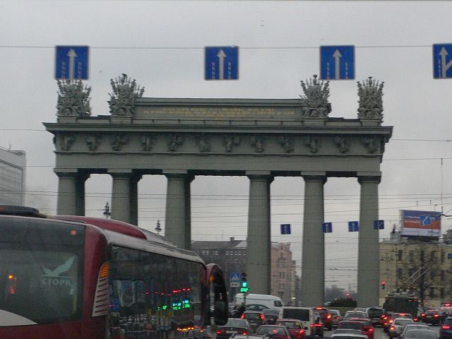 8.その他 (1)モスクワ広場にあるレーニン像 旧レニングラード市議会前の広場にはレーニン像が立っている。 (2)凱旋門 町中心部への入り口。 (3)モスクワ駅前広場のオベリスク ソ連時代の記念碑だそうだ。 |